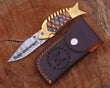 Handmade Damascus Steel Fish Pocket Knife Camping Hunting EDC Knife with Leather Sheath.