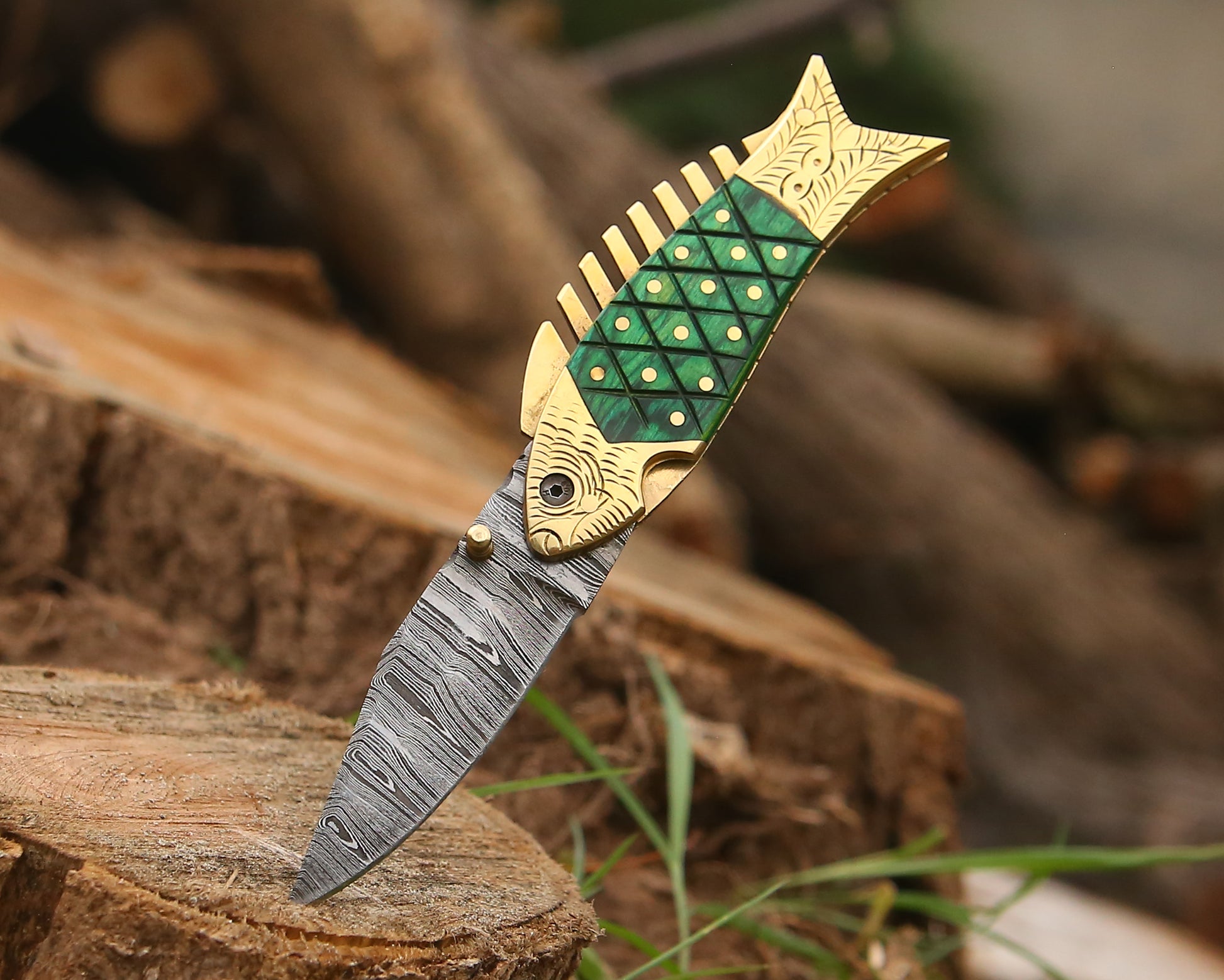 Bring craftsmanship and creativity together with this unique fish-shaped Damascus steel folding knife — a true collector’s piece that blends art, function, and tradition. Each knife is hand-forged by skilled artisans, featuring a razor-sharp Damascus blade and a beautifully detailed handle designed like a fish, symbolizing luck and strength.
