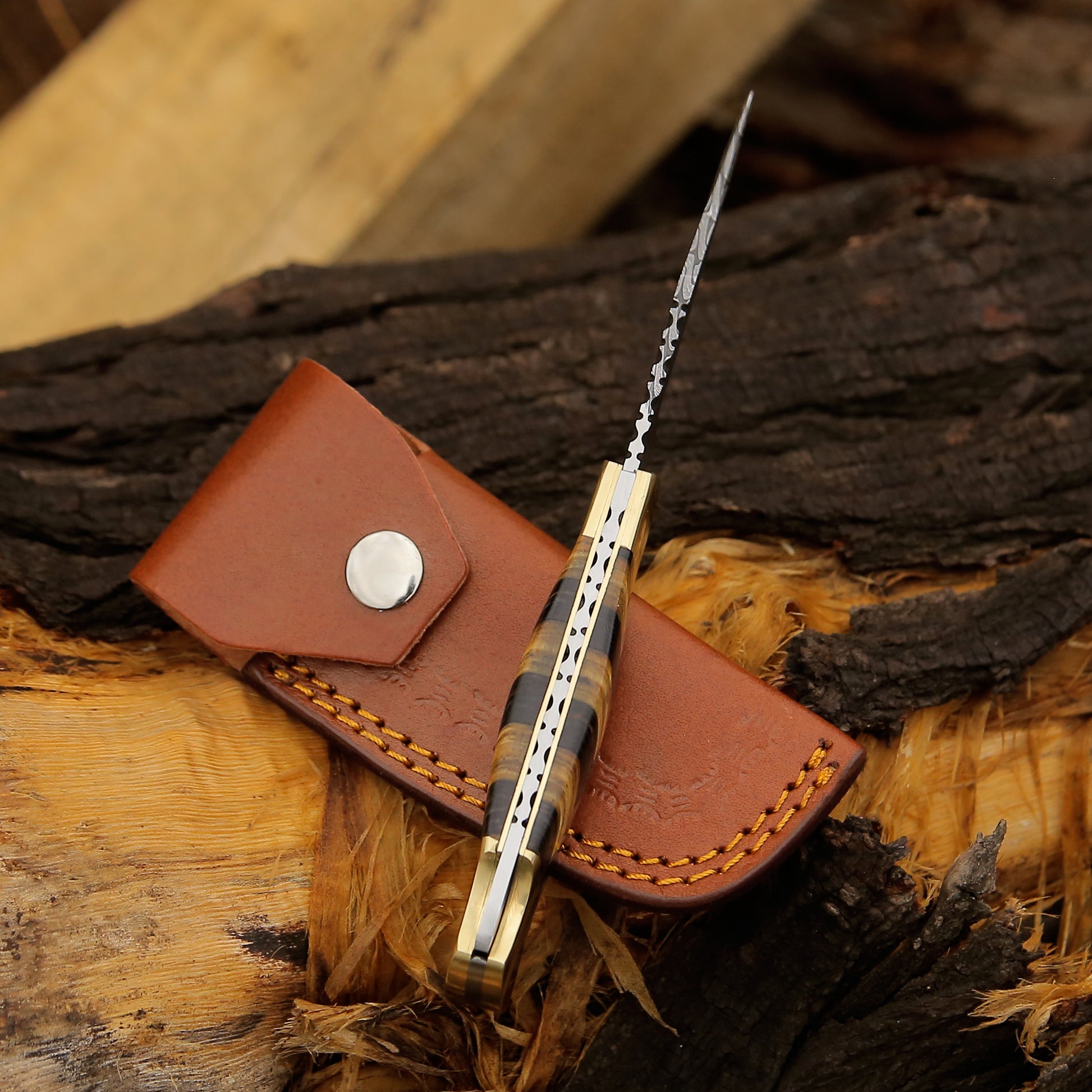 Compact for everyday carry, the ergonomic handle (premium wood/bone/resin) delivers comfort, durability, and style.