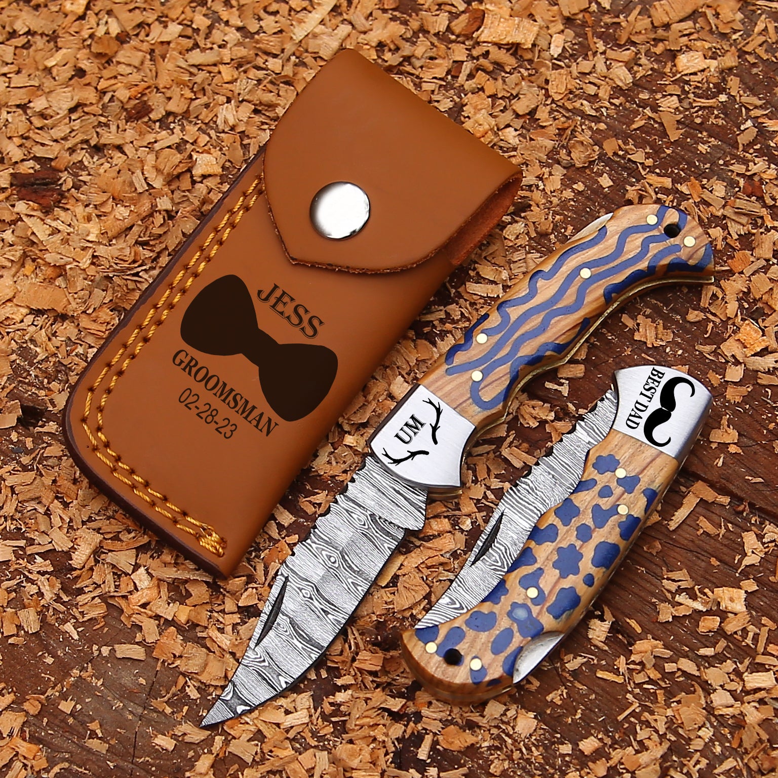 Custom Engraved Damascus Steel Folding Pocket Knife