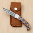 Handmade Damascus Folding Knife | Decorative Blue Handle & Sheath | Ideal EDC Gift for Men