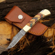 Custom Engraved Damascus Steel Folding Pocket Knife
