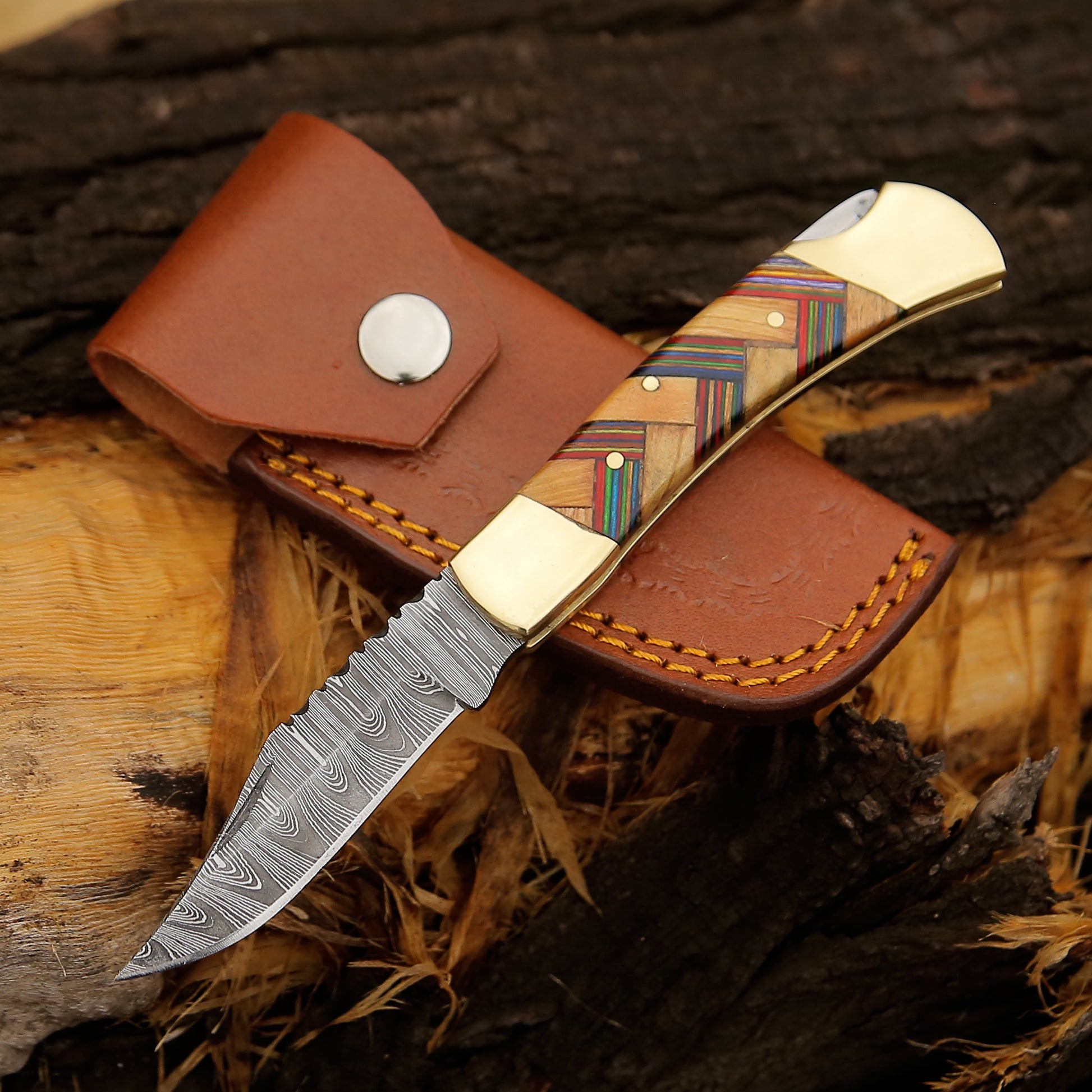 | Handle Material | Olive wood + Multicolor wood with Brass Bolster |